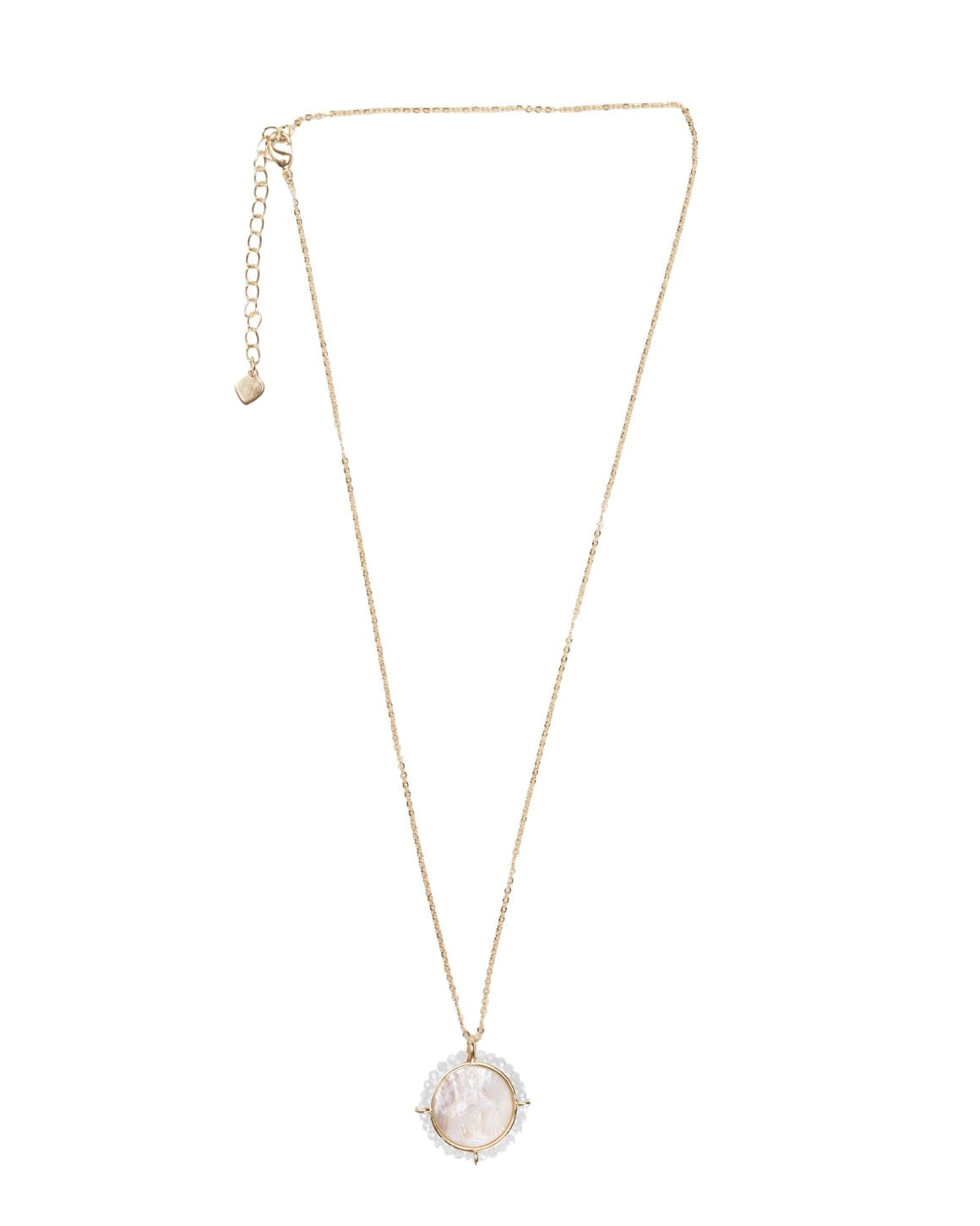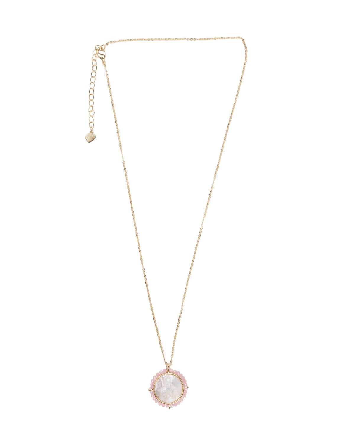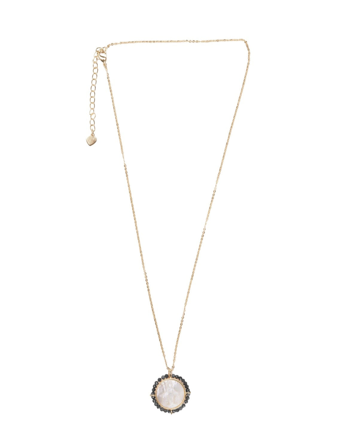 Montée sur une chaîne en laiton doré résistante à l'eau, cette médaille associe élégance et spiritualité. Le laiton apporte chaleur et brillance et garantit une belle résistance à l’usage quotidien. La finition dorée sublime les nuances de la nacre et l'éclat des perles colorées.