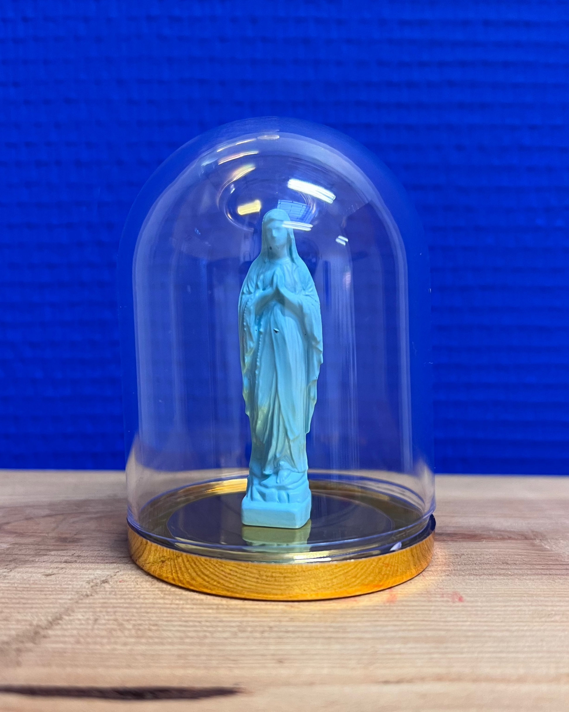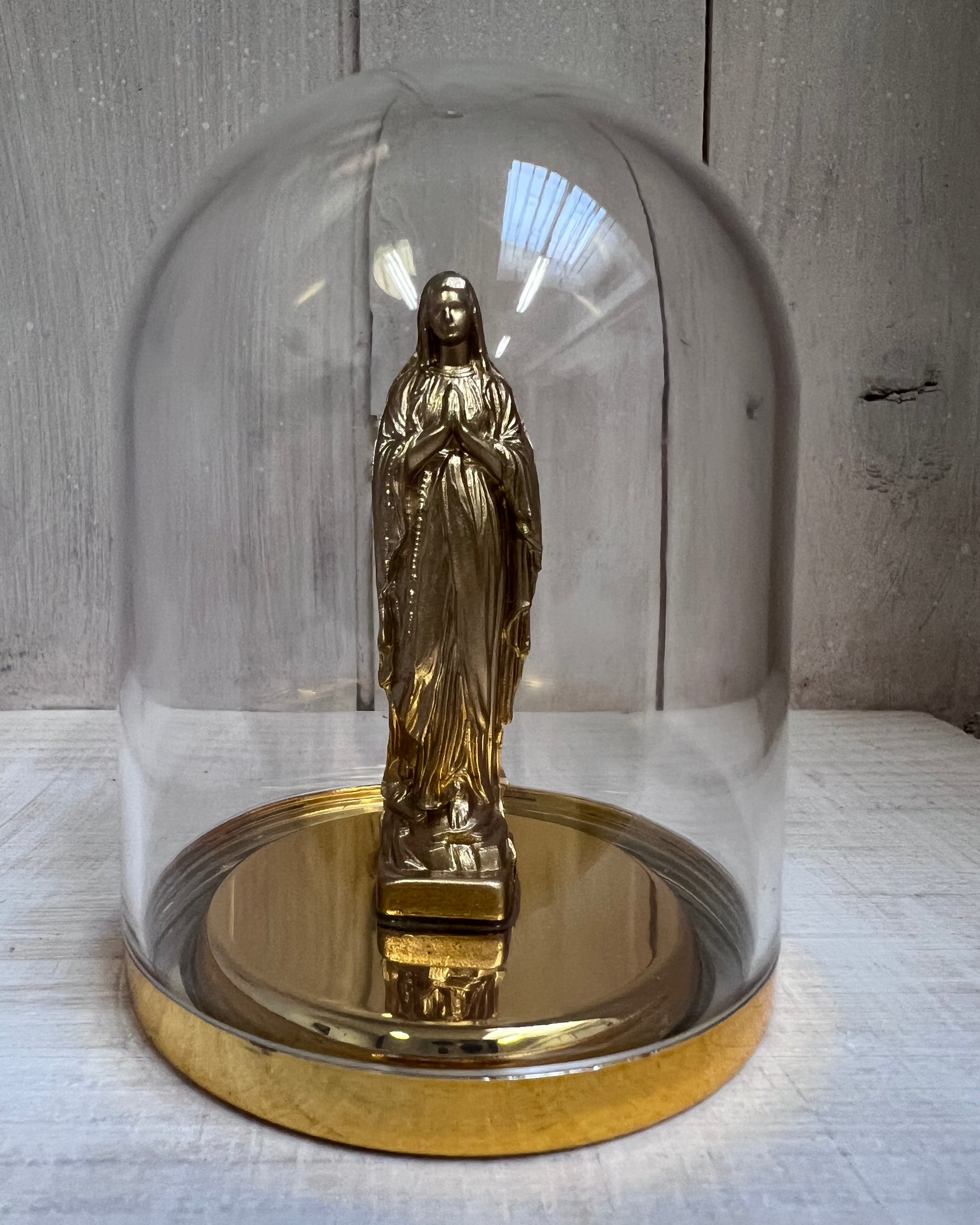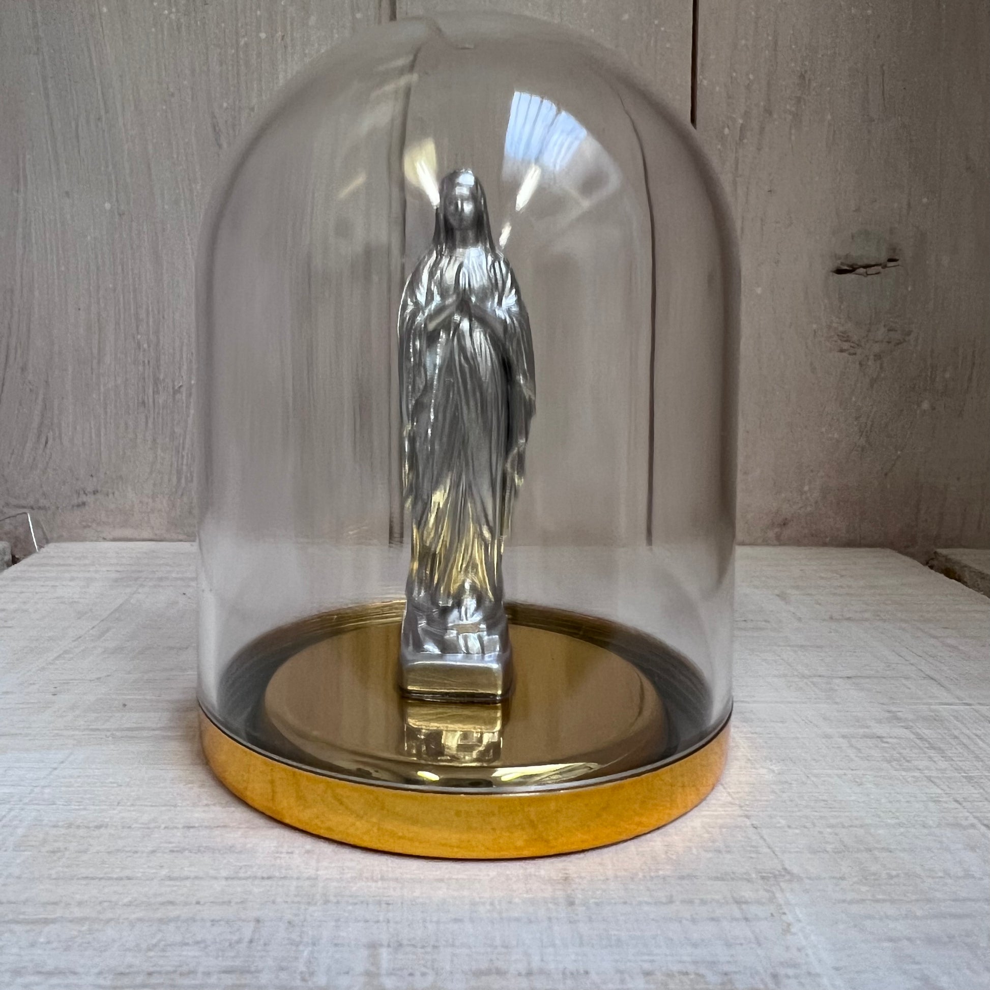 Cloche plexi socle doré : 8cm, diamètre 6,5 cm